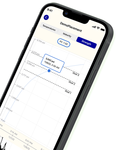 Instead, contractors can use maturity monitoring to reliably estimate their in-place concrete’s strength based on measured data at the job site. By embedding COMMAND Center™ sensors in the concrete after placement, concrete strength can be estimated from the internal temperature history of the actual project’s concrete.